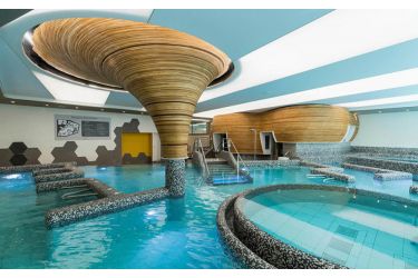 Plongez dans une eau entre 31 et 34°, 270 m² de bassins, 133 jets, 12 ateliers : des cols du cygne, de la marche à contre courant, des transats immergés, des bains bouillonnants, des alcôves…